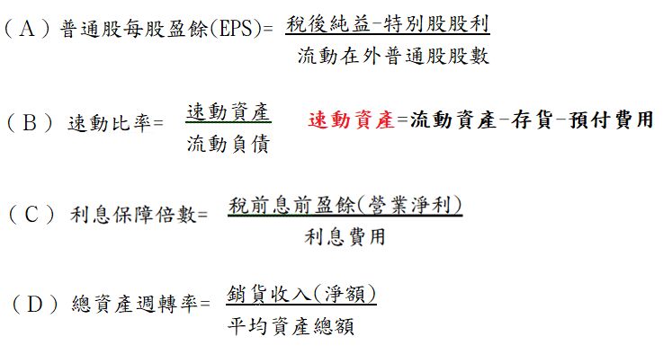 (D)固定資產週轉率=產品銷售收入淨額÷(固定資產平均淨值-折舊-應付票據)x100%