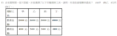 皮老闆想開一家川菜館 於是選擇了以下4種理財工具 請問 何者投資報酬率最高?