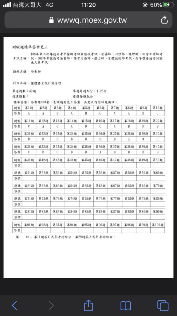 108年 - 108年 - 108-2 專技高考團體膳食設計與管理#78349 #78349 --11題 考選部更正第11題 CD皆給分