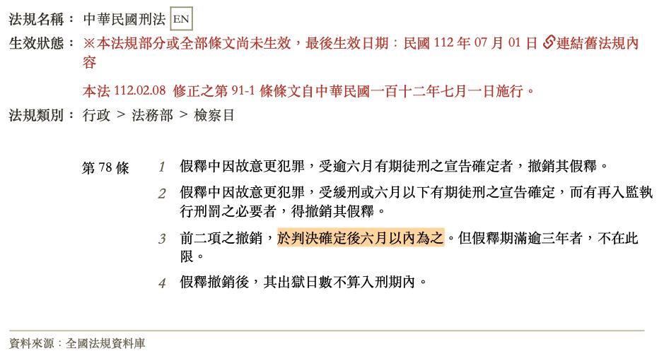 假釋中因故意犯罪而受六個月有期徒刑以上宣告喔。