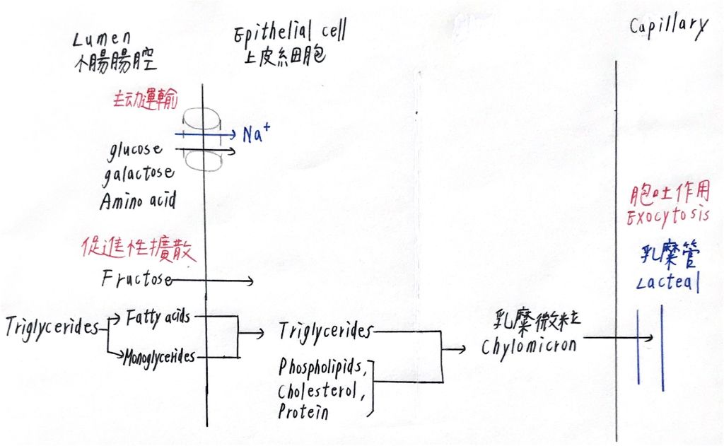 (C)胺基酸經由主動運輸由小腸腔進入絨毛上皮細胞中