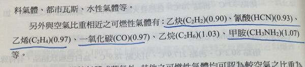 35. 下列可燃性氣體中,其比重較空氣大者(假設空氣的比重為1)為何?