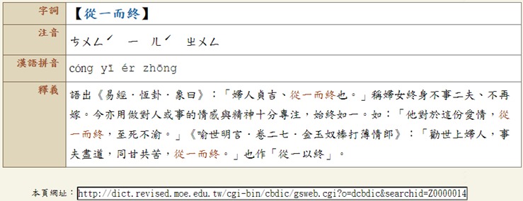 (B)從一而終:對人對事的情與精神十分專注,始終如一