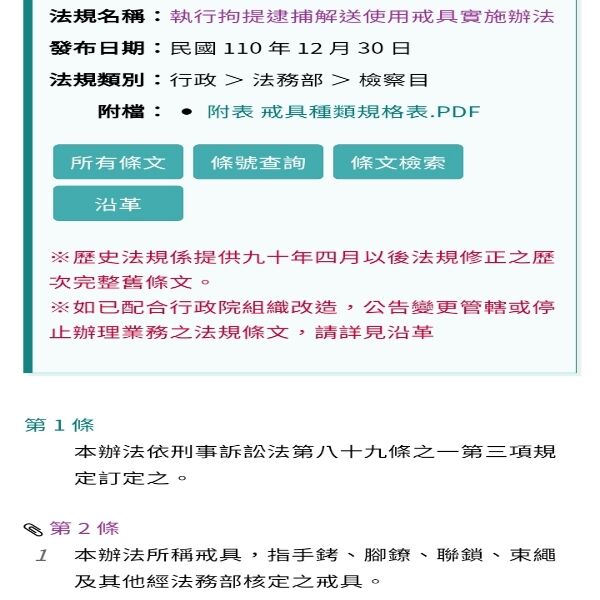 依照監獄行刑法規定之戒具:腳鐐、手銬、聯...
