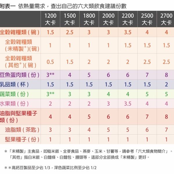 來源:衛福部國民飲食指標手冊(107年)