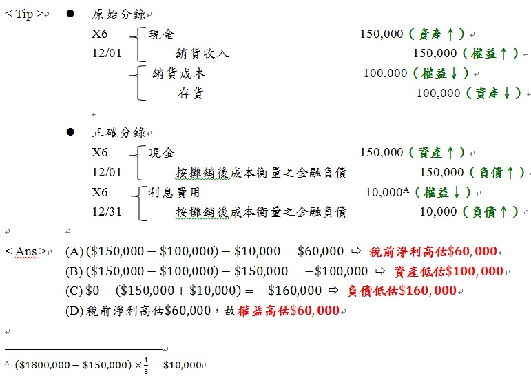 (A)稅前淨利高估$50,000
