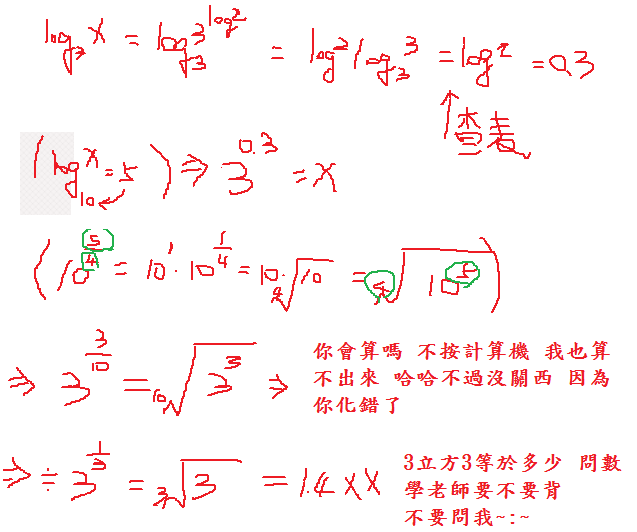 4.已知x = 3log2,則下列何者正確?