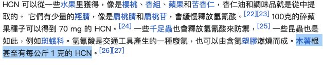 1 依據食品中污染物質及毒素衛生標準,下列何者訂有氫氰酸(HCN)限量標準?