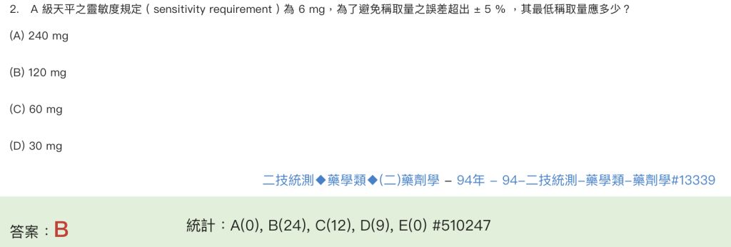 考試當時也對靈敏度需求完全沒印象,當時想說可以試試以題目給的數字乘一乘、除一除答案就出來了,如果考試看到真的沒讀過的題目或許這個手段是一個最後殺手鐧