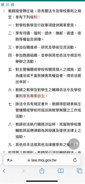 - 教師之教學及對學生之輔導依法令及學校章則享有專業自主。
