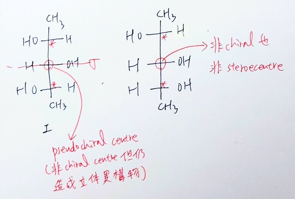 1. 下列化合物是以費雪(Fischer)投影方式呈現,請問Ⅰ及Ⅱ各有多少個掌性(chiral)中心?