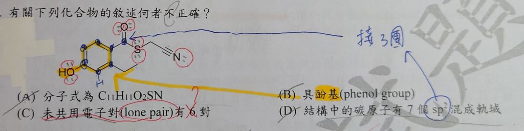 (D) 結構中的碳原子有 7 個 sp2 混成軌域