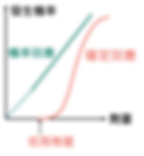確定效應:嚴重程度隨劑量增加而增加(有低...