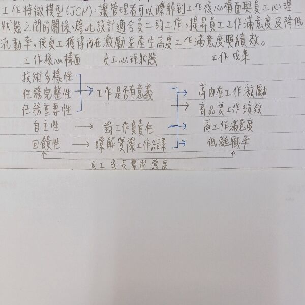 1. 工作特徵模式(job characteristics model)主張要讓員工感覺到工作有意義,組織應?