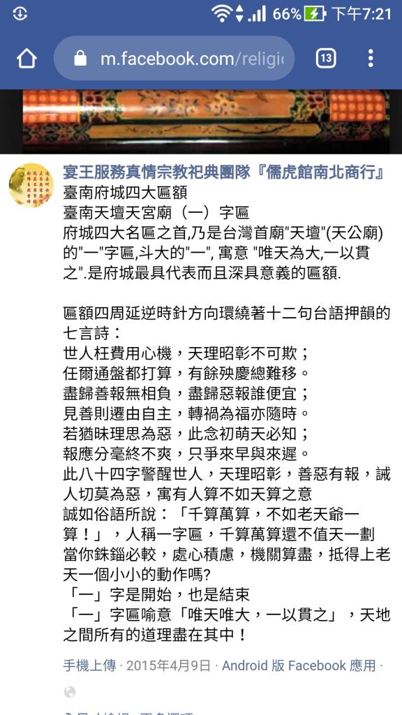 (D)「福地洞天」掛於天壇