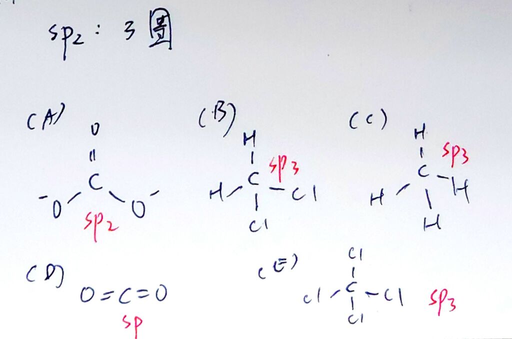 10. 下列化合物中,何者的碳原子是以 sp2 混成軌域 (hybridization) 的形式與周遭原子進行鍵結?