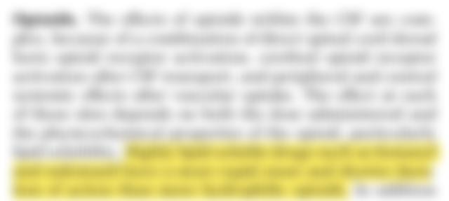 (D) 親脂性 (lipophilic) 鴉片類藥物較適合,因其較快止痛,且可提供較長作用時間