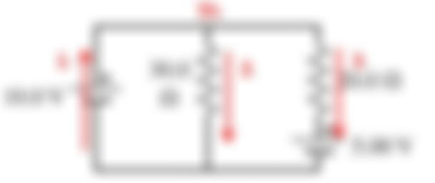 11 忽略下列電路圖中電池的內阻,請計算流過 10.0 V 電池的電流?