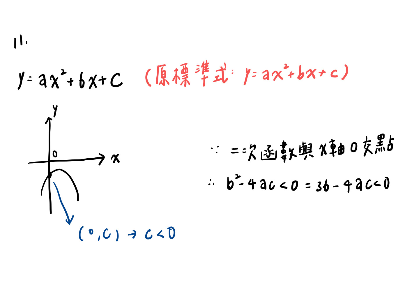 11.二次函數 y = ax2 + 6x + c 的圖形如下。 下列何者正確?
