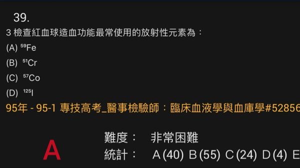11.測定紅血球的壽命,可用下列何種同位素?