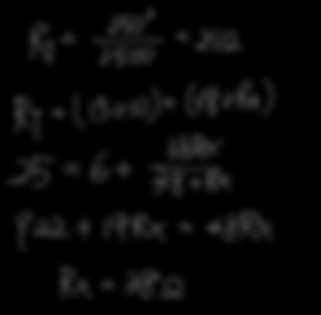 11. 如圖所示,為使電路中消耗的總功率為 2.5kW,電阻器 Rx 的值為何?