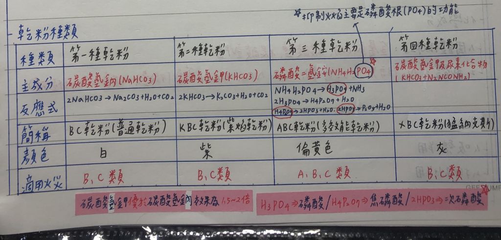 第三種乾粉主要成分為磷酸二氫銨((NH4)H2PO4)