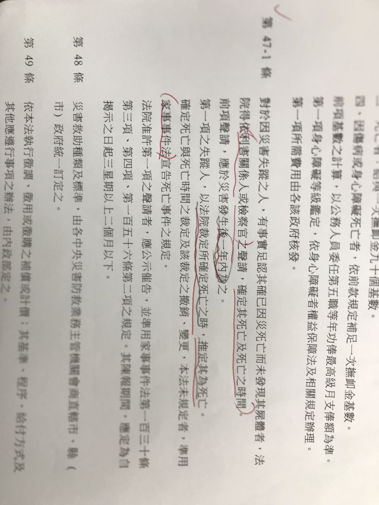 12 依災害防救法規定,有關因災害失蹤之人,有事實足認其確已因災死亡而未發現其屍體者,下列