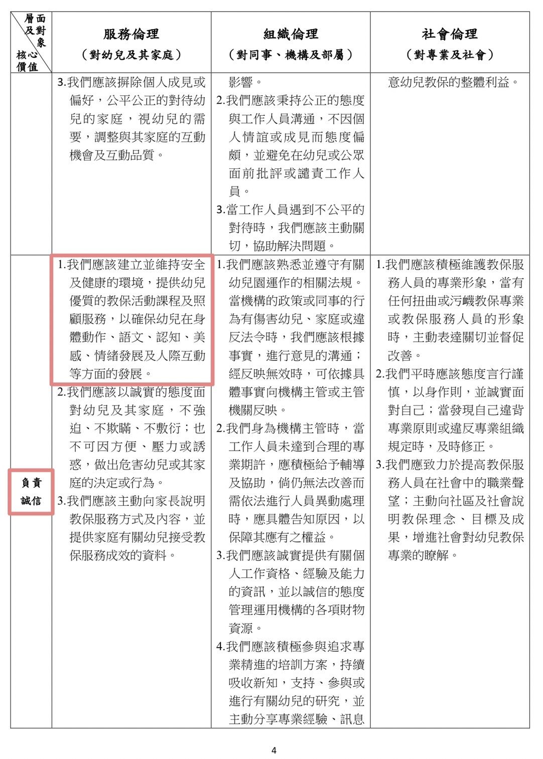 幼兒園教保服務人員工作倫理守則參考資料總說明 P.4