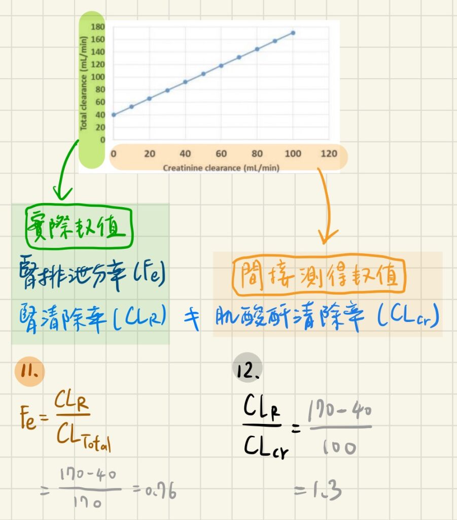 所以正常Cl腎為170-40=130 所求即為Cl腎/ Clcr = 130/100 = 1.3