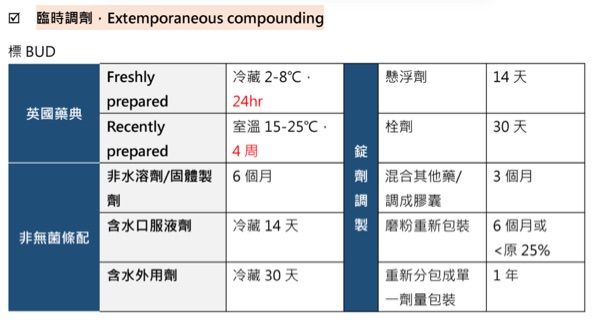 12.有關非無菌調配製劑(nonsterile compounded drug preparation)的使用期限(beyond-use date),下列敘述何