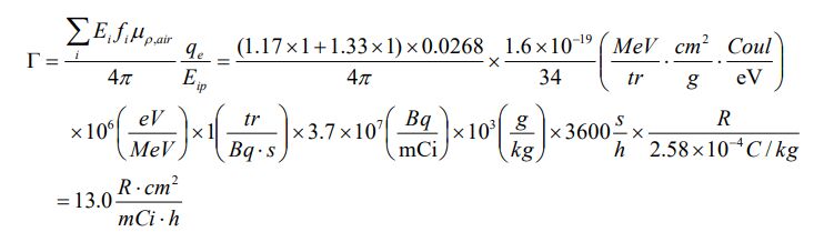 12. 60Co 核種之比加馬常數(specific gamma ray constant) Γ 值約為多少