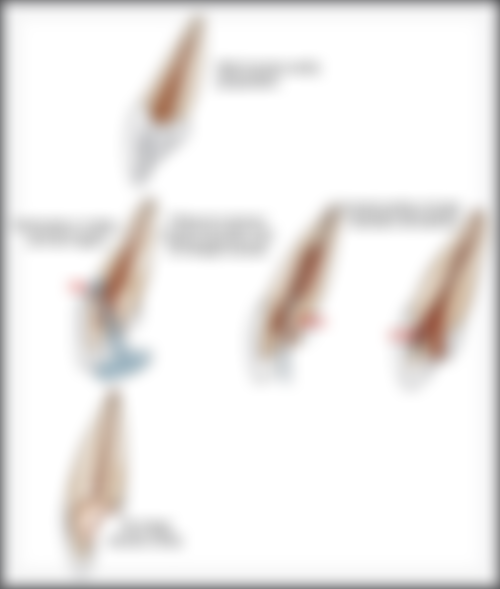(B)若沒有移除舌側肩台(lingual shoulder),根管銼針會往唇側偏轉,使得腭側根管無法清創完全