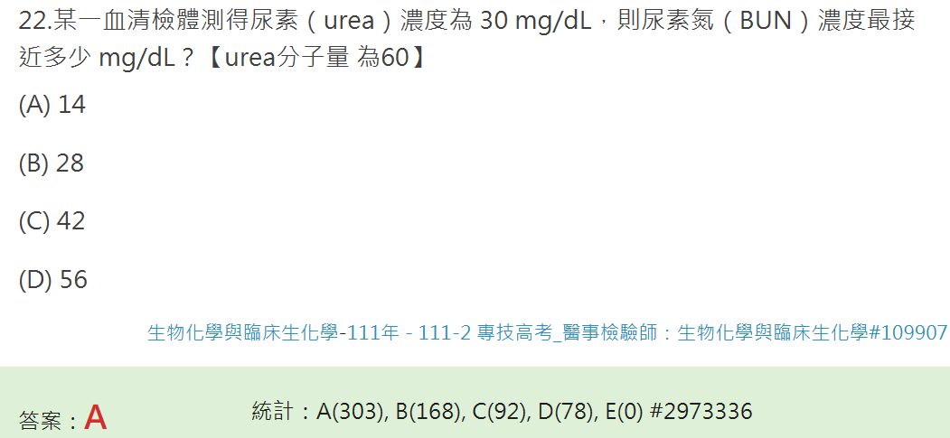 13.有關血中尿素氮(BUN)與血清尿素(urea)的關係,下列何者正確?