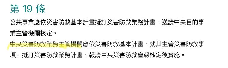 前項中央災害防救業務主管機關就其主管災害防救業務之權責如下: