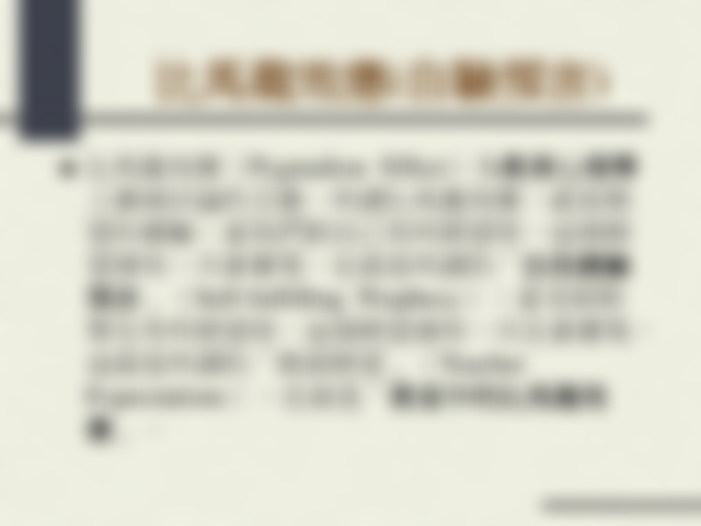 13.當教師對學生不適當的期望,影響到學生的自我評價,形成其認為「我不如人」的預言,久 而久之,學生在以後行為上實踐其預言,此種心理現象稱為何種效應?