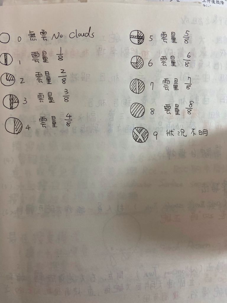 13. 天氣圖上美國船舶測站填寫資料如圖,則當時的雲量為何?