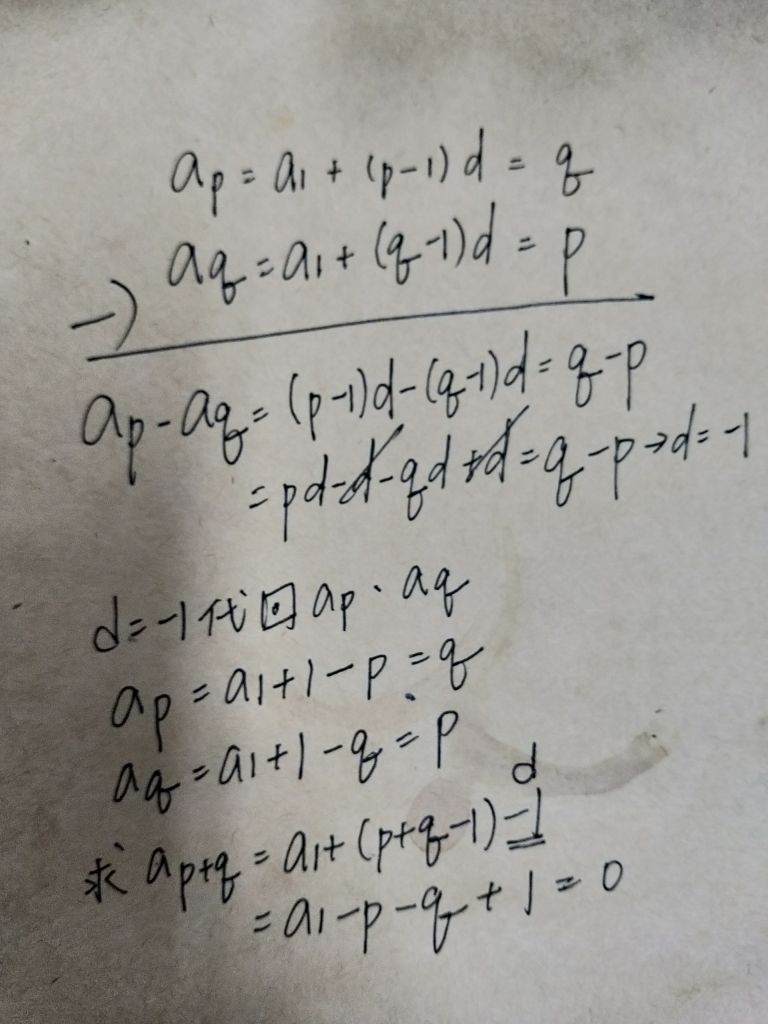 a1-p-q+1=0,可用ap=a1+1-p=q代入就會全部消掉