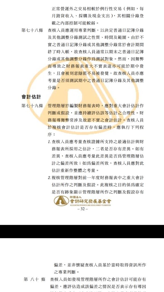 14 依照我國審計準則公報第 43 號之規定,查核人員為因應管理階層踰越控制之查核程序,而