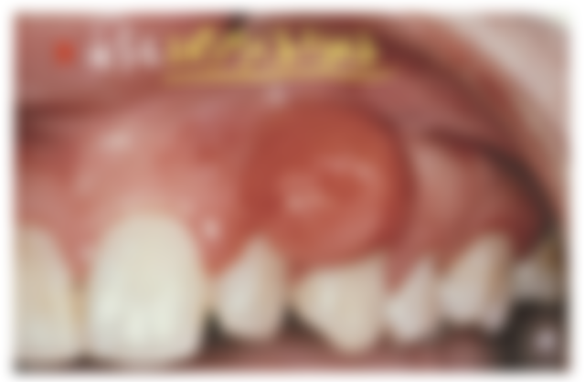 14.一個18歲女高中生,在左側上顎犬齒附近的牙齦處,發現一個1.1公分的淡紅色,有彈性,外表