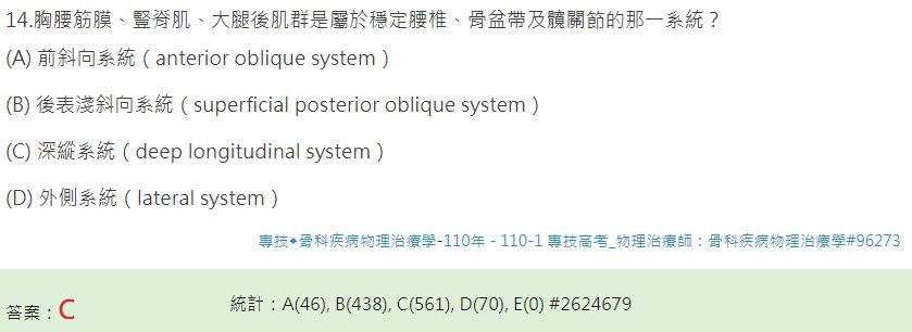 14.闊背肌、臀大肌、胸腰筋膜是屬於穩定腰椎、骨盆帶及髖關節的那一系統?