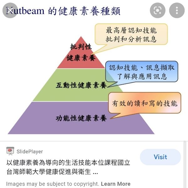 14. 根據Nutbeam(2001)指出「健康素養(health literacy)」包括三個層面,不包含下列何項?