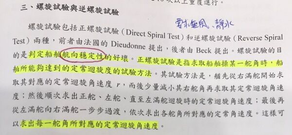 14. 船舶操縱性能試驗中,螺旋試驗之目的為何?