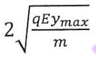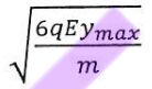 . Neglecting gravity, the particle is accelerated by the E field, but the magnetic force bends it to the right and the resulting trajectory is shown in the figure. At point P, the particle reaches its maximum height ymax. What is the velocity of the particle at point P?