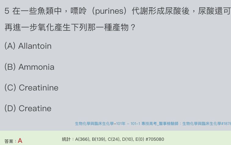15.下列何種酵素參與人體內 uric acid 的生成?