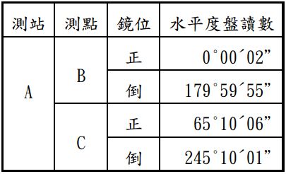 15.於測站A整置經緯儀,對測點B、C做水平角觀測,觀測記錄如下表,則∠BAC為: