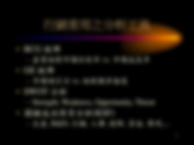15.針對組織的內、外部環境進行分析,以瞭解或發現其優勢、弱勢、機會與威脅的分析方法,是指下列何者?
