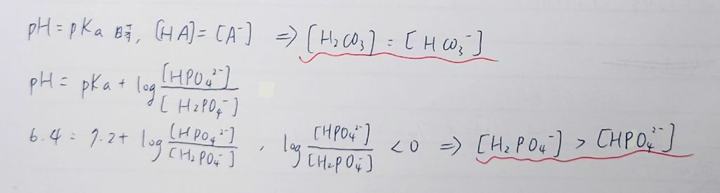 (D) [HCO3 - ] > [H2CO3] 且 [HPO4 2- ] > [H2PO4 - ]