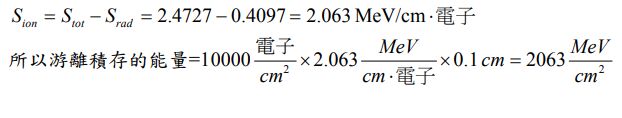 (radiation)、Pb 表示鉛,對水的 Stot=2.4727 MeV/cm,Srad=0.4097 MeV/cm,請問在第一