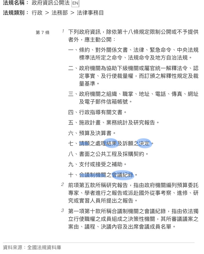 本題關鍵字=>訴願審議委員會為內部單位,僅合議制機關之會議記錄應主動公開