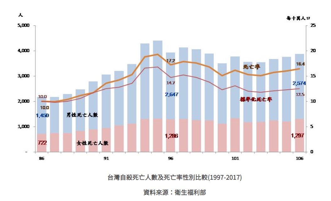 下,近幾年已見初步成效,台灣的自殺死亡
